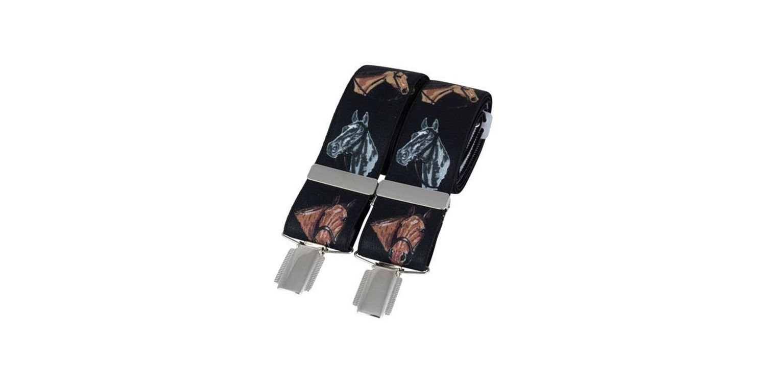 Add a touch of equestrian elegance to your wardrobe with our Black Horse Head 35mm Silver Clip Braces. These British-made braces are crafted with the finest materials and feature a classic X-back design for optimal support and comfort. The intricate black horse head motif adds a touch of sophistication and a nod to the equestrian world.