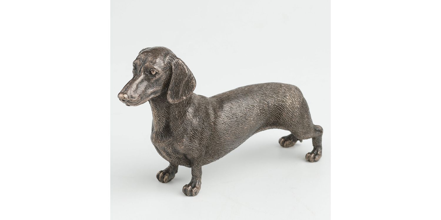 Celebrate the character and charm of the dachshund with this finely detailed cold cast bronze sculpture. Designed to capture the distinctive stance and personality of this much-loved breed, it brings a touch of warmth and elegance to any room. A thoughtful gift for dog enthusiasts or a stylish ornament for your own collection.