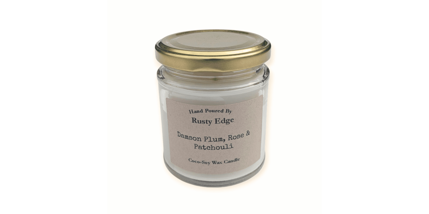 Indulge your senses with the Damson Plum, Rose & Patchouli candle, hand-poured in small batches by Rusty Edge. This coco-soy wax candle blends rich damson plum with soft floral rose and warming patchouli, creating a luxurious fragrance that brings a cosy atmosphere to any room.