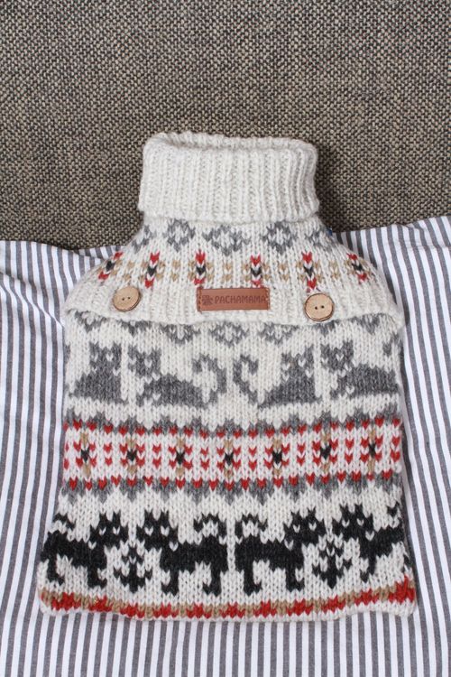 Cosy up on chilly nights with the charming Pachamama Crafty Cat Hot Water Bottle. Hand-knitted in Nepal from 100% wool, this delightful cover features a simple yet striking fair isle design with playful cat motifs. A must-have for cat lovers, it brings warmth, comfort and a touch of handmade charm to your bedtime routine.