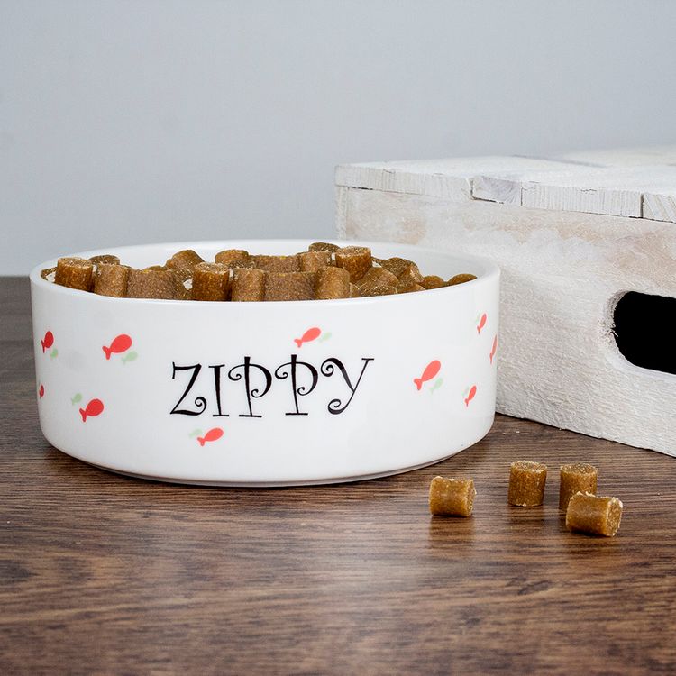 Treat your feline friend to their very own personalised cat bowl! This deep ceramic bowl features a playful orange fish design, making mealtimes even more special.