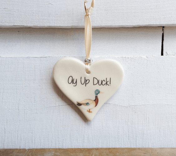 This Ay up Duck Hanging Heart decoration will be a humorous addition to your home and also a finishing touch for your Christmas tree.