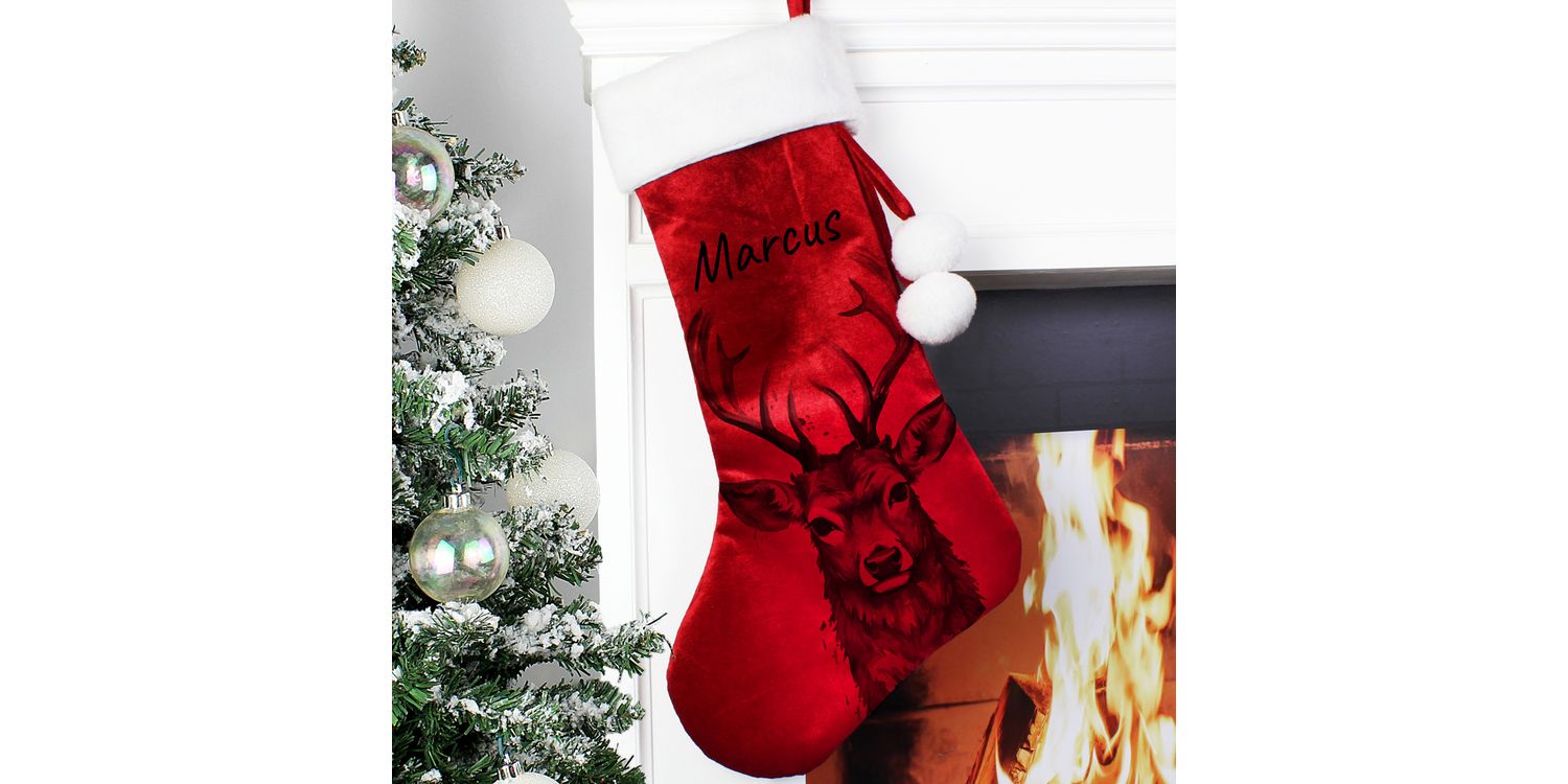 Add a touch of magic to Christmas with our personalised stag red stocking. This festive stocking is perfect for filling with treats or as a decorative piece. Personalise it with a name to create a unique and special gift.