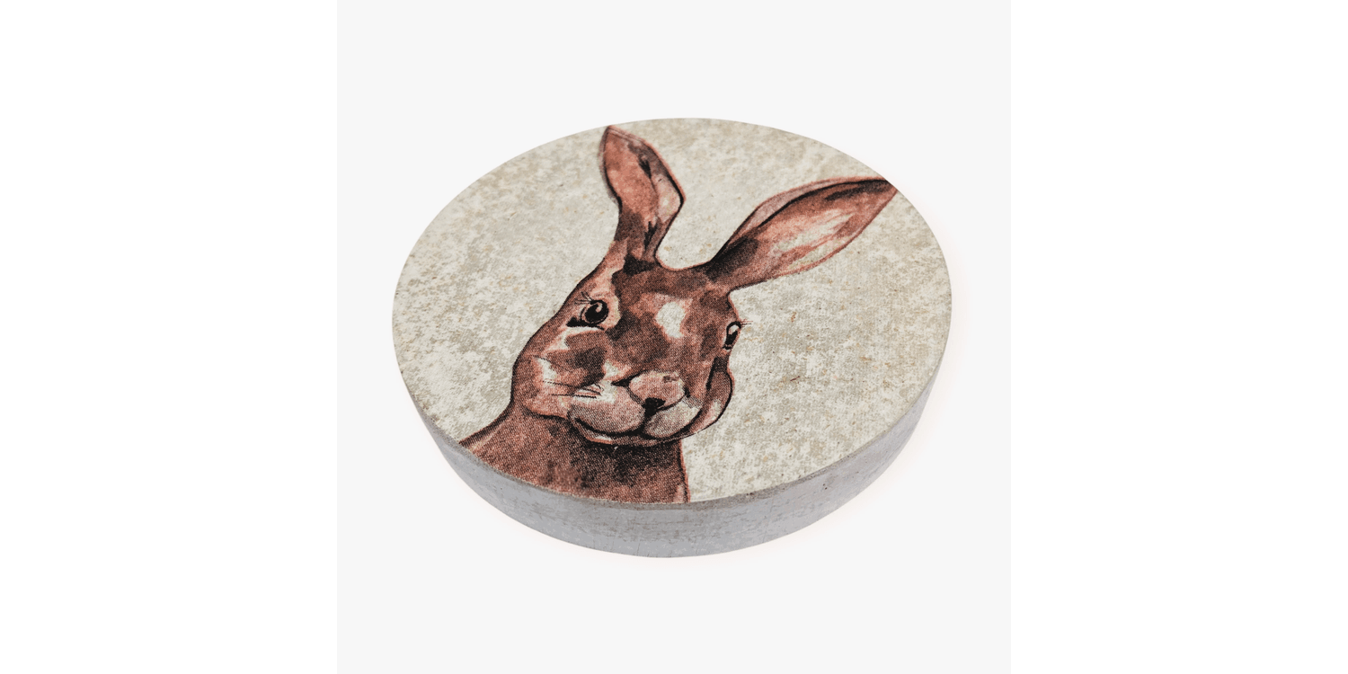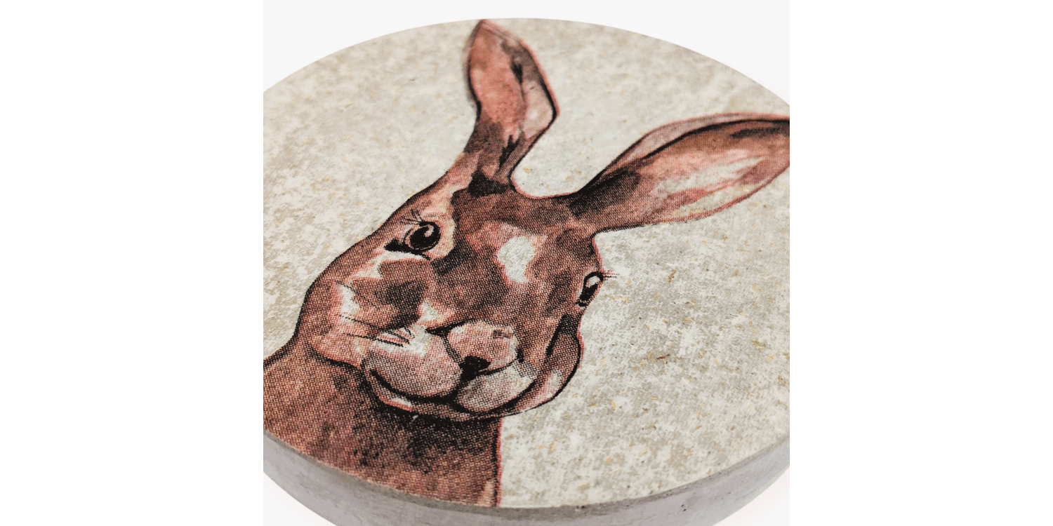 Add countryside charm to your home with this handmade concrete coaster featuring a delightful hare illustration. Made in Oxfordshire, each coaster is individually crafted and sealed with a water-repellent finish, making it both stylish and practical for everyday use.