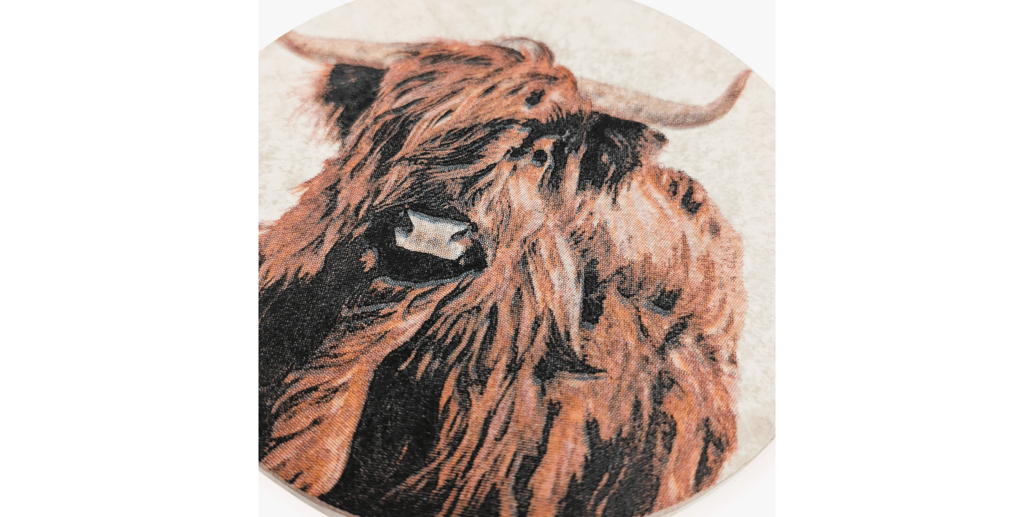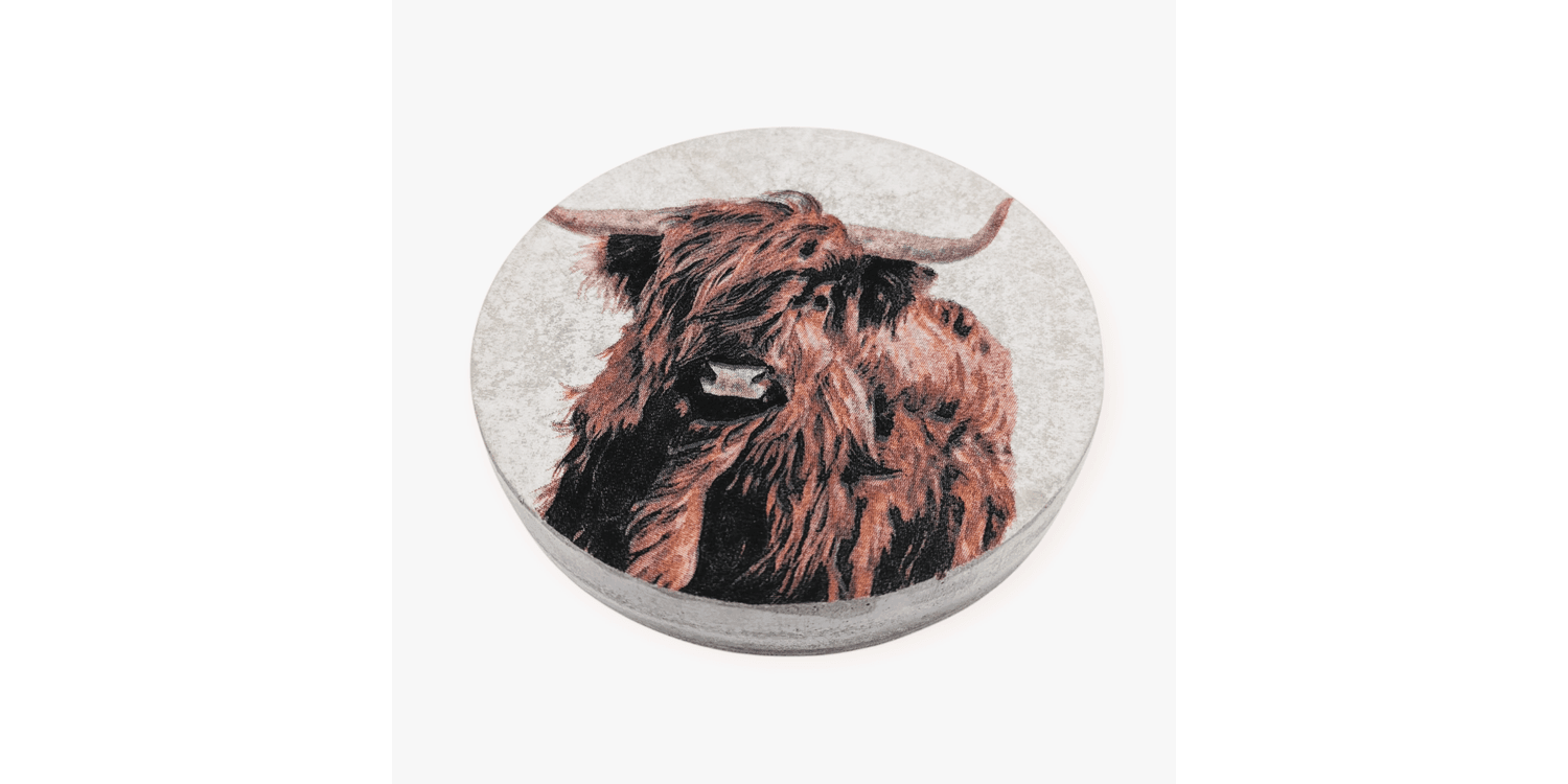 Bring a touch of the countryside into your home with this handmade concrete coaster featuring a charming Highland Cow illustration. Crafted in Oxfordshire, each piece is sealed with a water-repellent finish, combining durability with rustic character for everyday use.