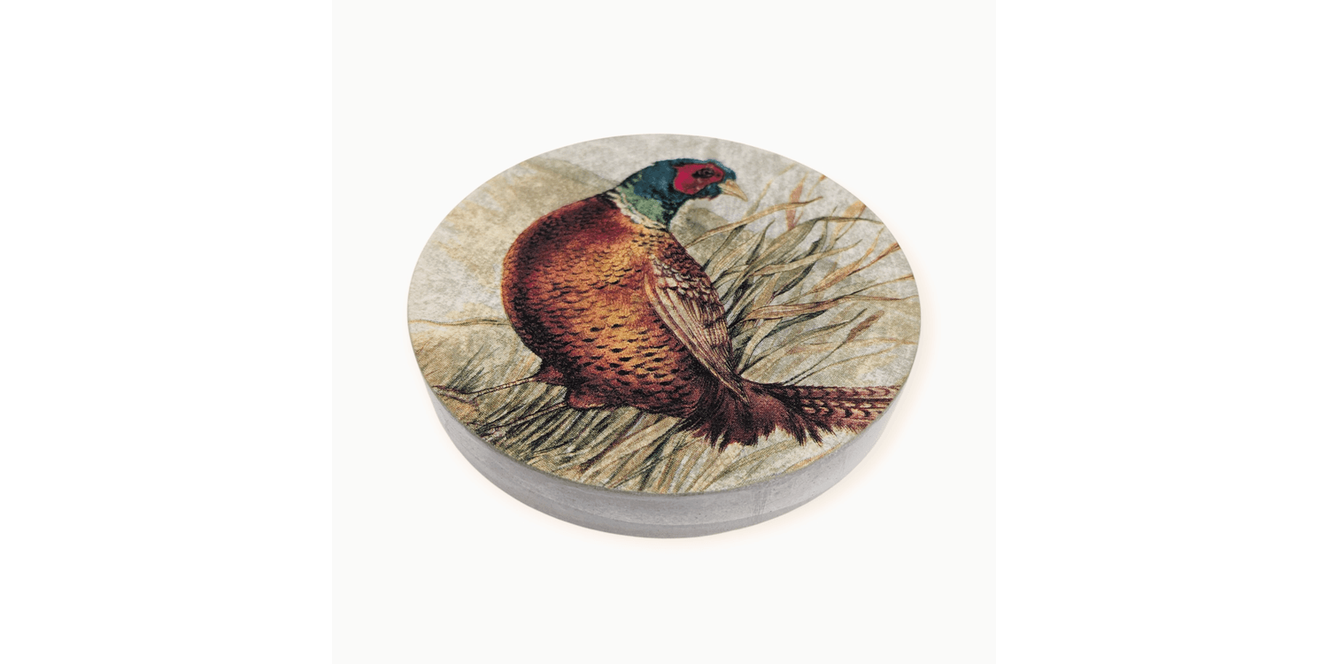 Add countryside elegance to your home with this handmade concrete coaster featuring a detailed pheasant illustration. Crafted in Oxfordshire and sealed with a water-repellent finish, it is strong, stylish and perfect for daily use.