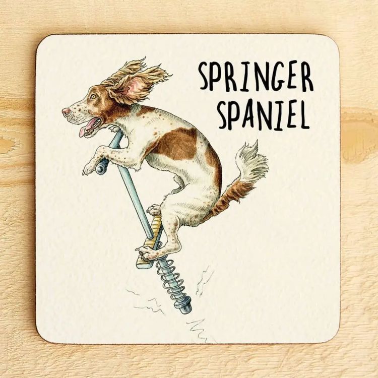 Bring a burst of energy to your coffee table with this funny Springer Spaniel drinks coaster. Full of character and charm, it’s perfect for dog lovers who enjoy a bit of humour with their morning brew or evening drink, and makes a great small gift.