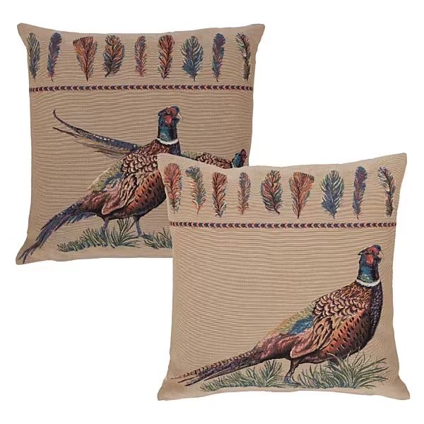 Hines of Oxford Pair of Pheasants Tapestry Cushions
