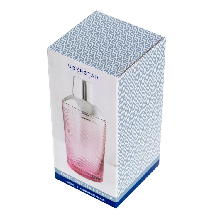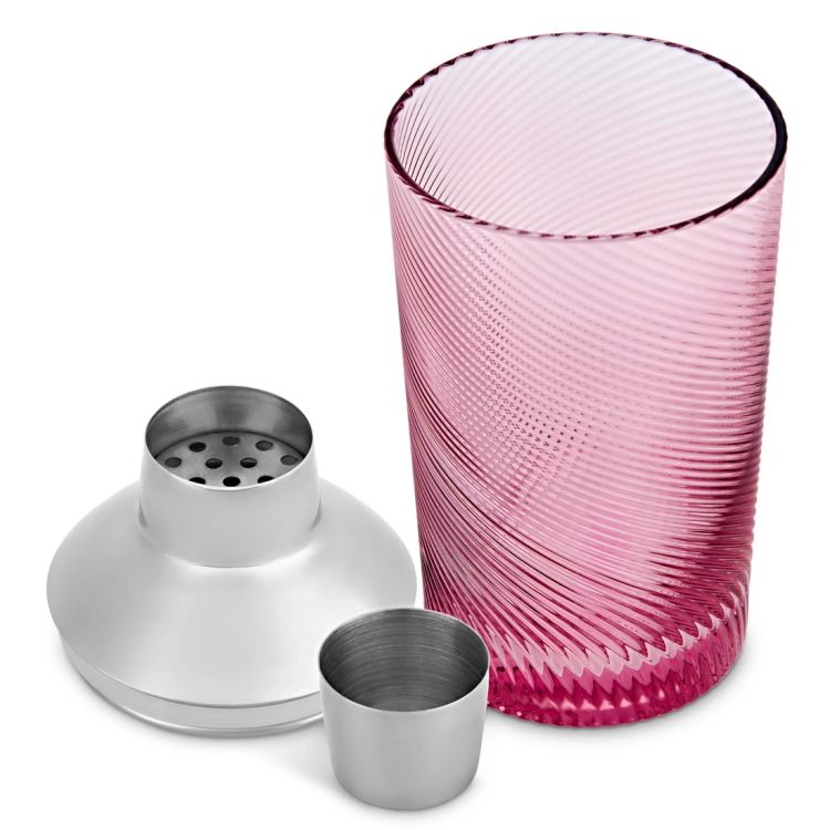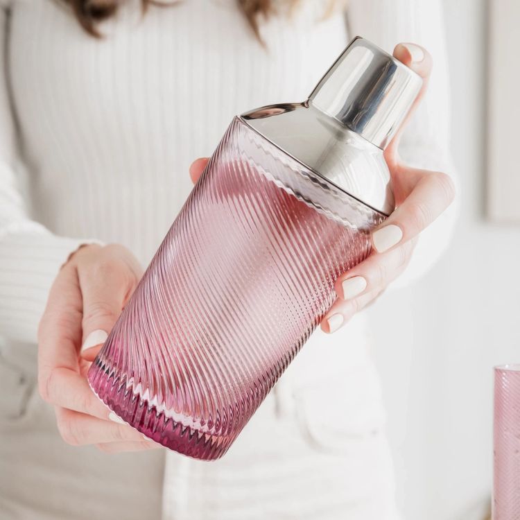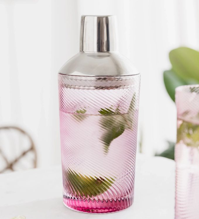 Add a playful pop of colour to your drinks setup with this pink twist glass cocktail shaker. Combining retro inspiration with a modern edge, its soft pink hue and swirling texture make it a stylish centrepiece for any home bar or gathering.
