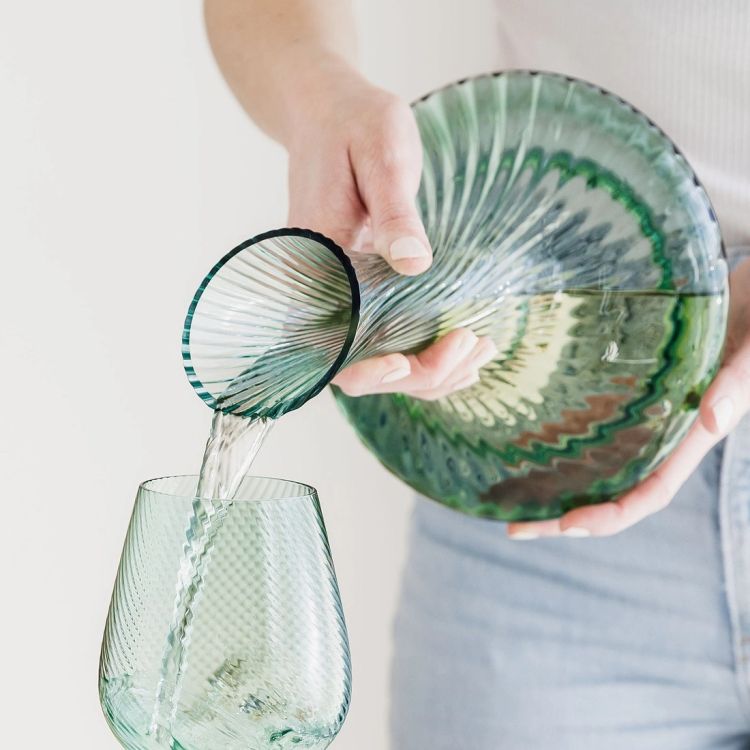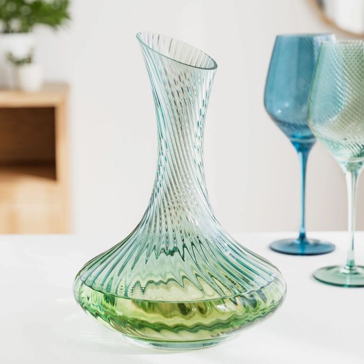 Elevate your wine service with this green twist glass wine decanter, designed to enhance both presentation and flavour. With its sculptural silhouette and subtle swirl detail, it brings a refined yet contemporary feel to any dining table or bar setting.