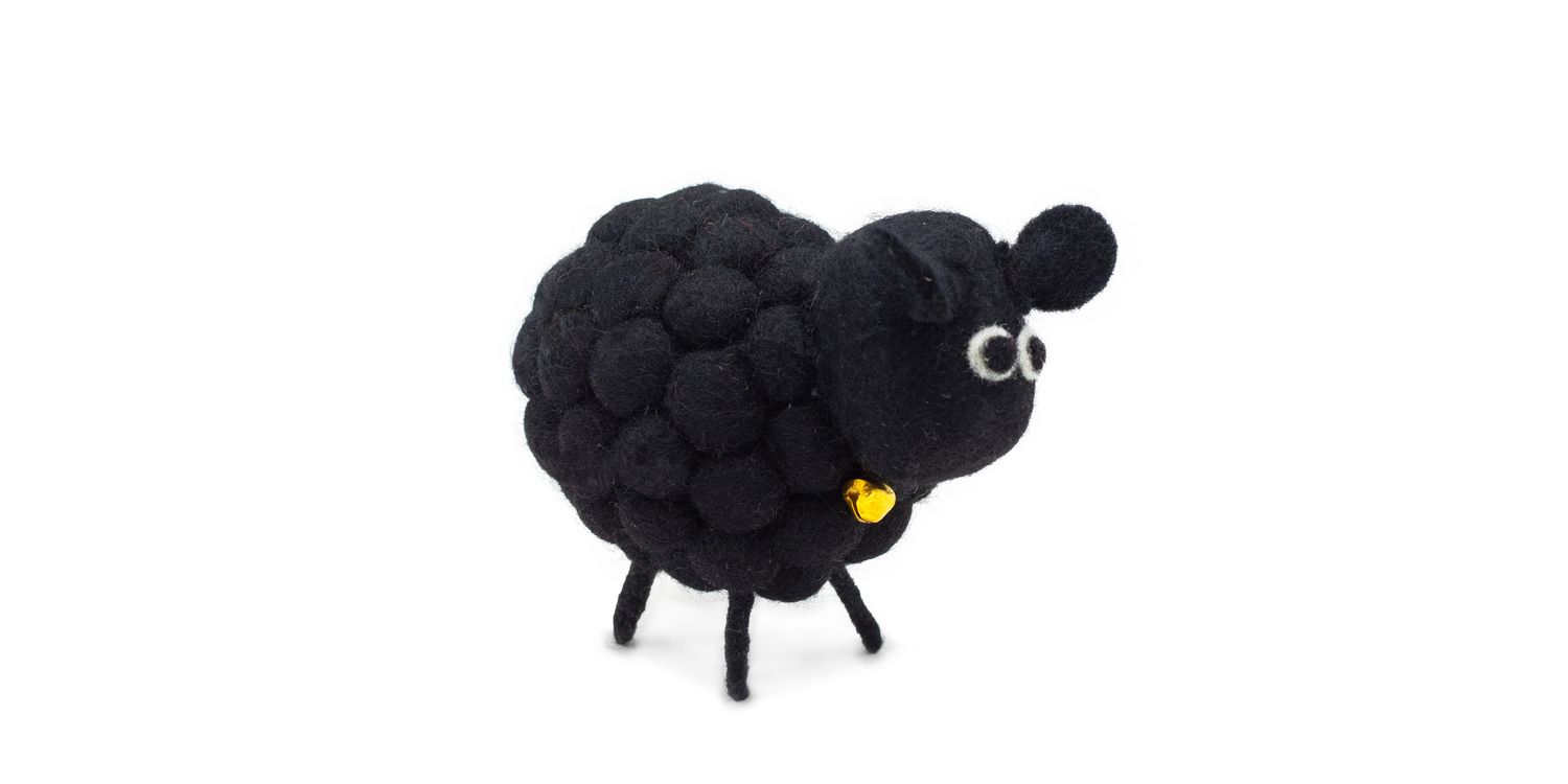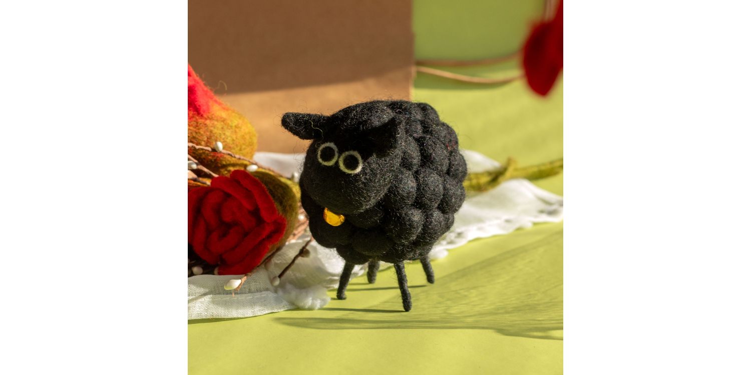 Bring playful character to your space with the Little Felt Sheep in black. Expertly handmade in Nepal from natural felt, this eye-catching sheep features a woolly texture and a golden bell collar, adding charm and contrast to shelves, windowsills or seasonal displays.
