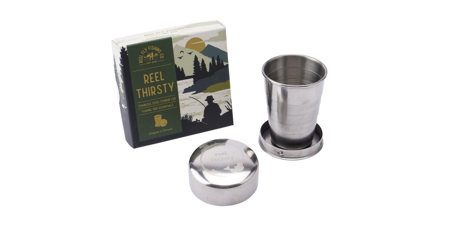 A lovely gift for someone to take on their fishing trips, this stainless steel Reel Fly Fishing Co. 'Reel Thirsty' Stirrup Cup is presented in an attractive box for an extra special touch.