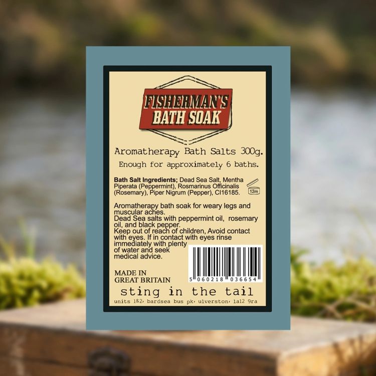 Natural bath salts handmade in England by Sting In The Tail, created as a simple way to unwind after a long day outdoors. This Fisherman’s Bath Soak blends Dead Sea salt with peppermint, rosemary and black pepper essential oils, giving a clean, minty scent that feels refreshing after time spent by the water. The salts dissolve gently in warm water and offer an easy, restorative soak.