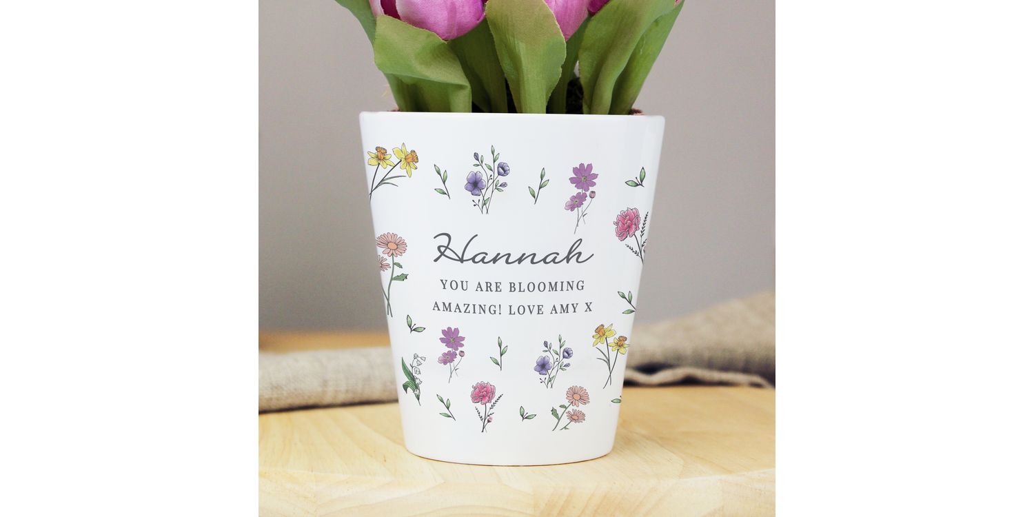 Brighten someone’s day with this charming Wild Flowers Plant Pot, a perfect personalised gift for gardeners or anyone who loves plants and nature. Beautifully crafted from ceramic, this pot features a drainage hole for easy plant care and can be personalised to make it truly unique.