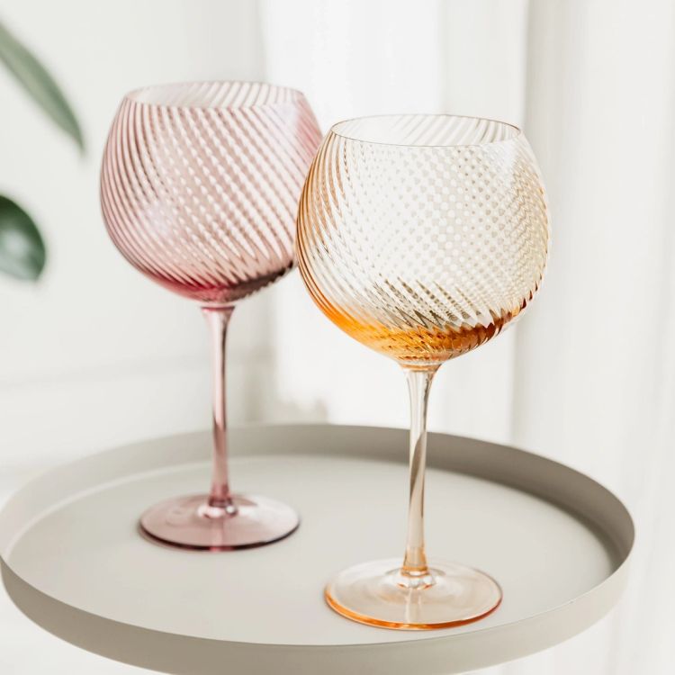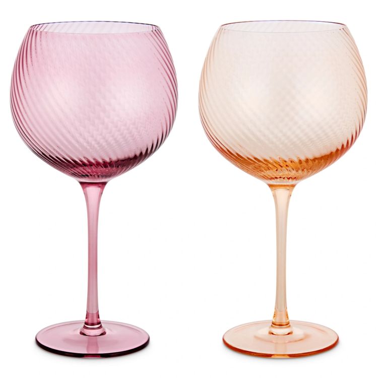 Serve your favourite drinks in style with this set of pink and peach twist gin glasses. Featuring a soft swirl design and elegant balloon shape, these glasses bring a warm, contemporary touch to any home bar or entertaining space.
