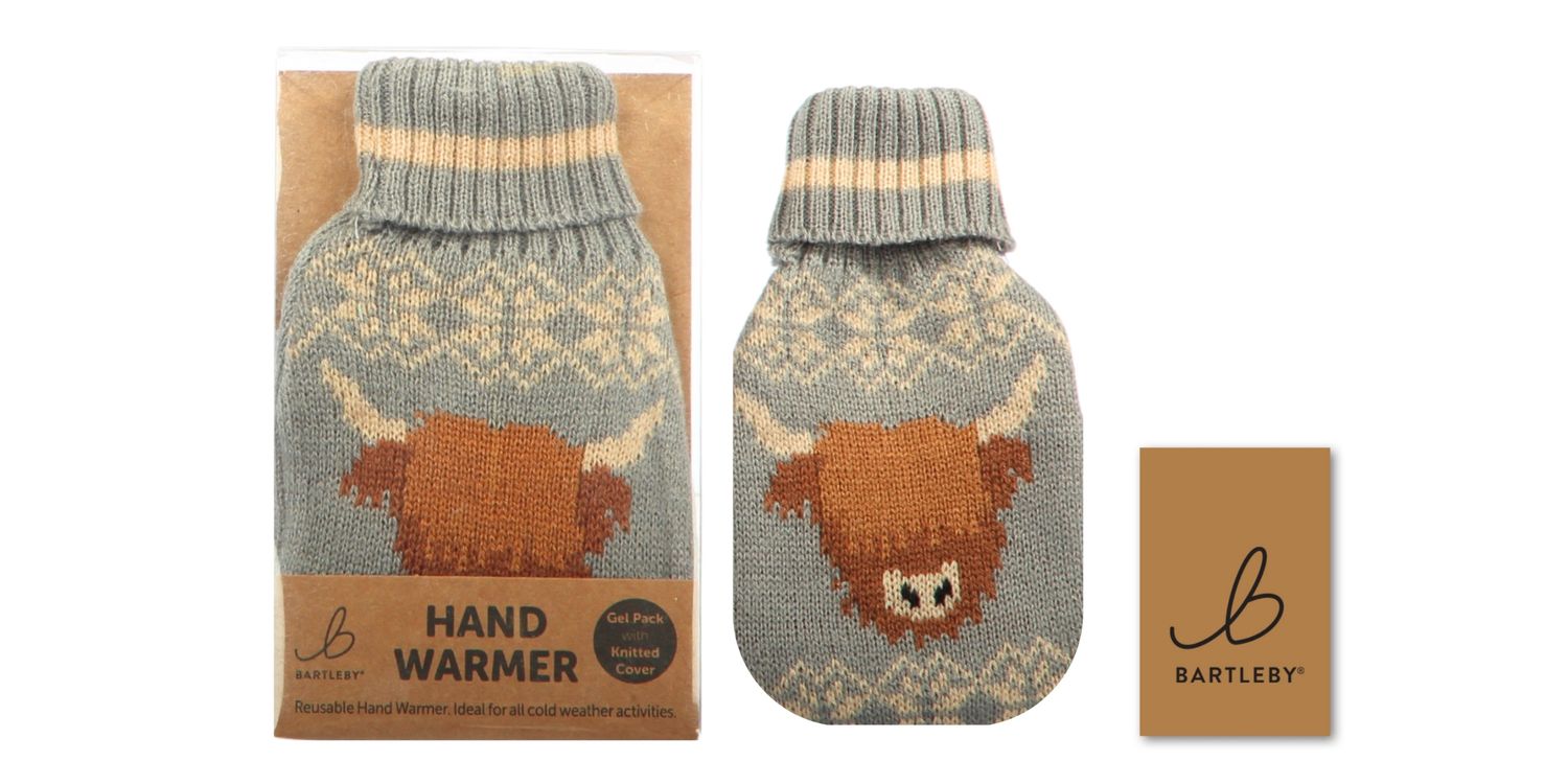 Keep your hands warm wherever you go with the Bartleby Knitted Hand Warmer featuring an adorable Highland Cow cover. This reusable warmer provides instant heat at the click of a button, making it perfect for winter walks, outdoor events or everyday commuting.