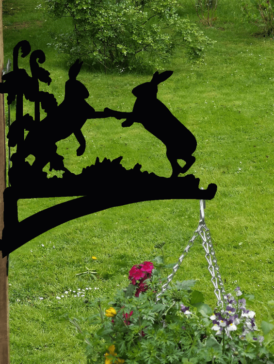 The unforgettable scene of two boxing hares is beautifully captured in this wonderful Hare Hanging Basket Bracket.