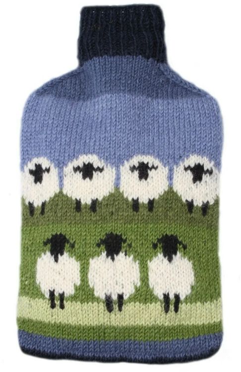 Hand-Knitted Wool Hot Water Bottle Cover - Sheep Design