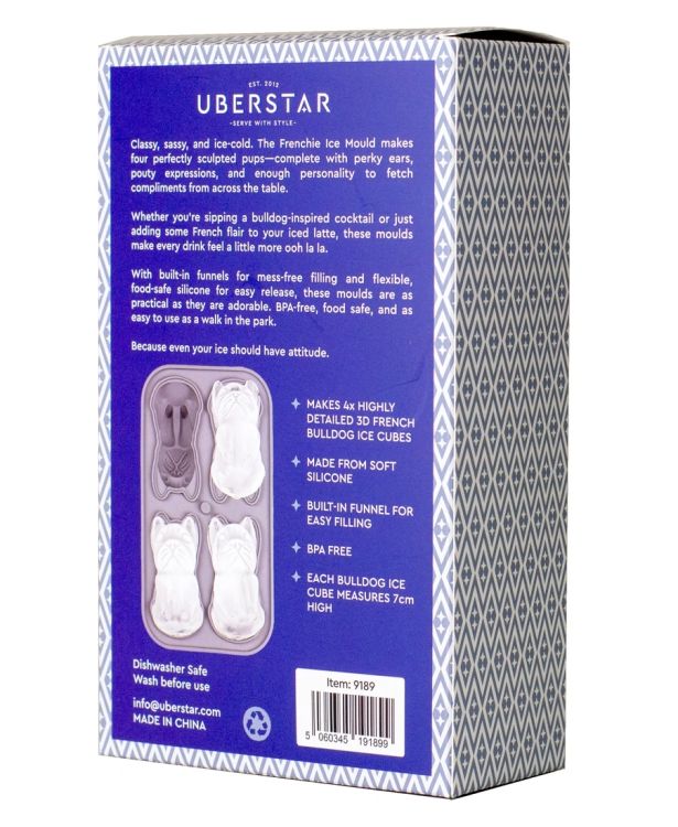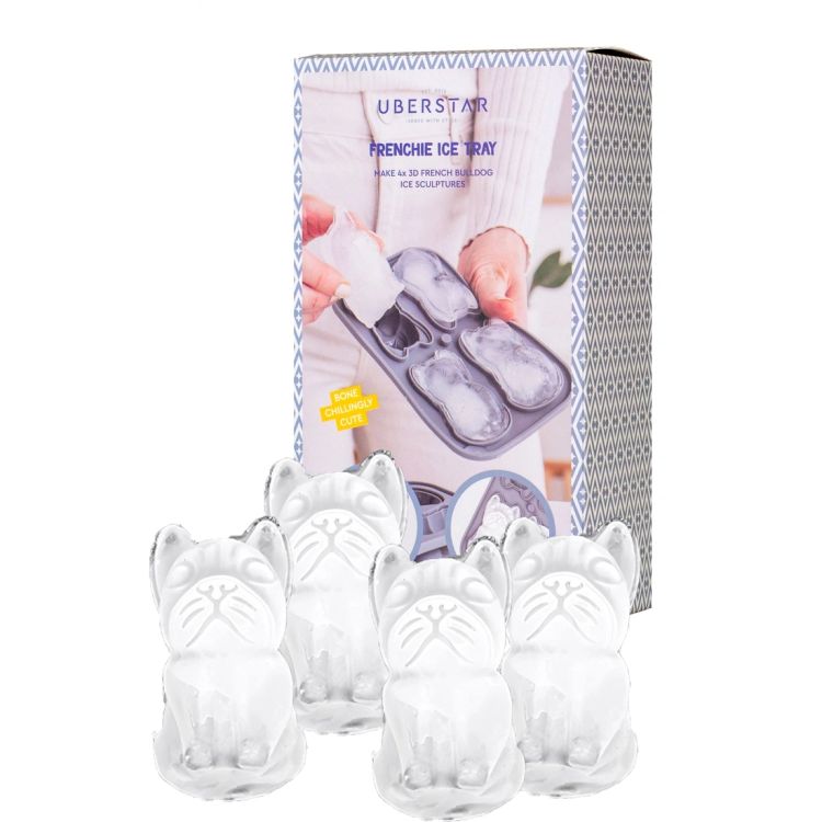 Add a playful twist to your drinks with this French Bulldog silicone ice cube tray, designed to create charming, detailed ice shapes. Each mould produces an adorable Frenchie complete with signature features, making it a fun and eye-catching addition to any glass.