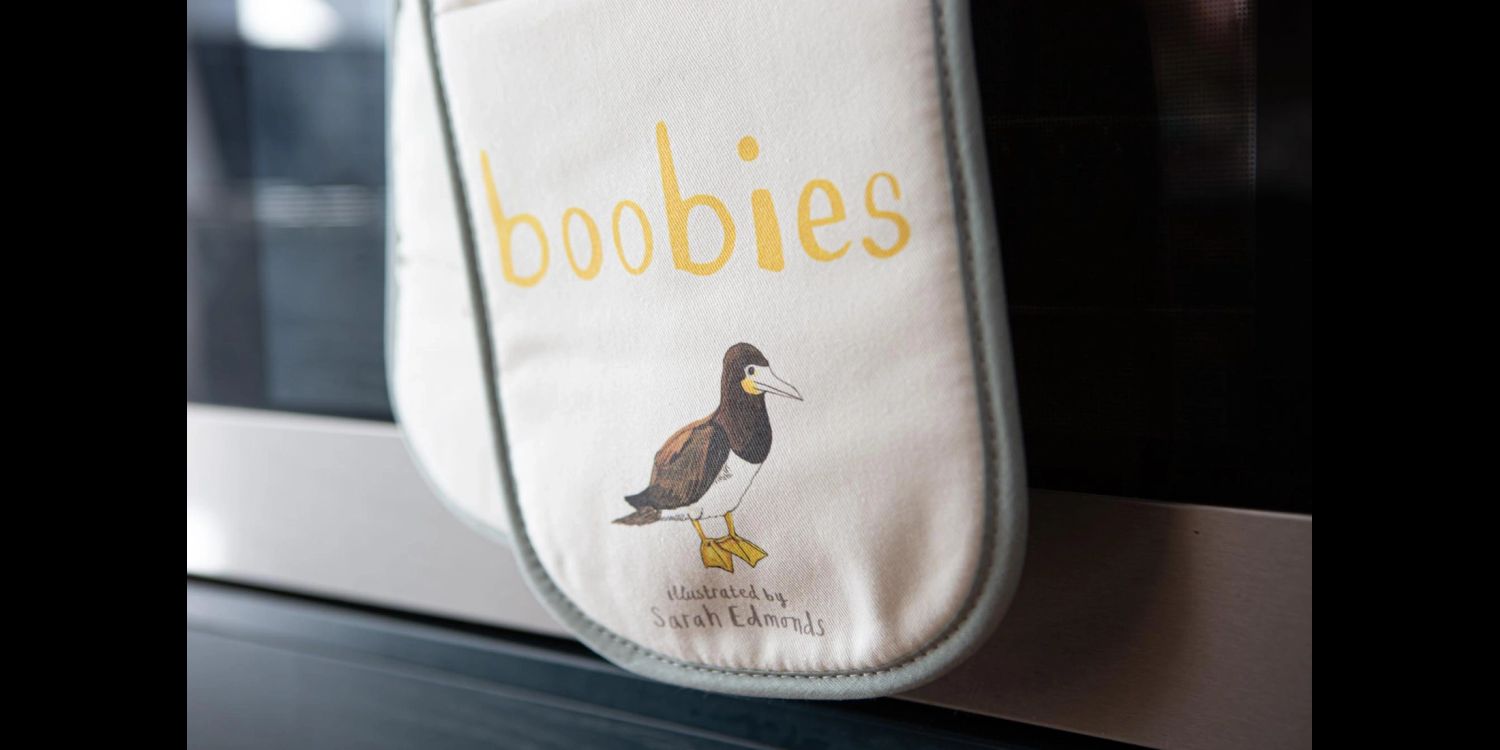 Bring a cheeky splash of humour to your kitchen with the Sarah Edmonds ‘Boobies’ Bird double oven glove. Packed with vibrant illustrations, it’s a brilliant gift for nature lovers and anyone who enjoys playful design, while still offering reliable protection when moving hot trays from oven to table.