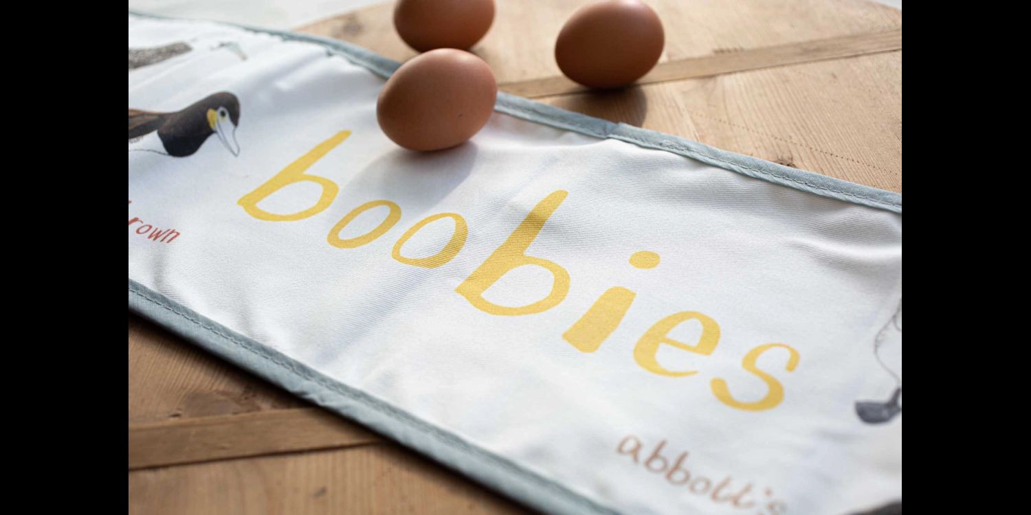 Open it out for the full “ta-dah!” effect, revealing eight beautifully drawn Booby family birds, finished with dove grey binding and a handy hanging loop for easy storage and display.