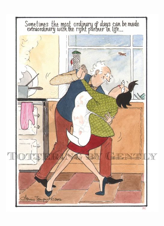 Tottering by Gently – Right Partner in Life Print by Annie Tempest beautifully captures the humour and warmth of everyday relationships through her much-loved characters, Daffy and Dicky. This witty giclée print offers a charming reflection on love and companionship, making it a thoughtful piece for collectors and fans of British cartoon art.