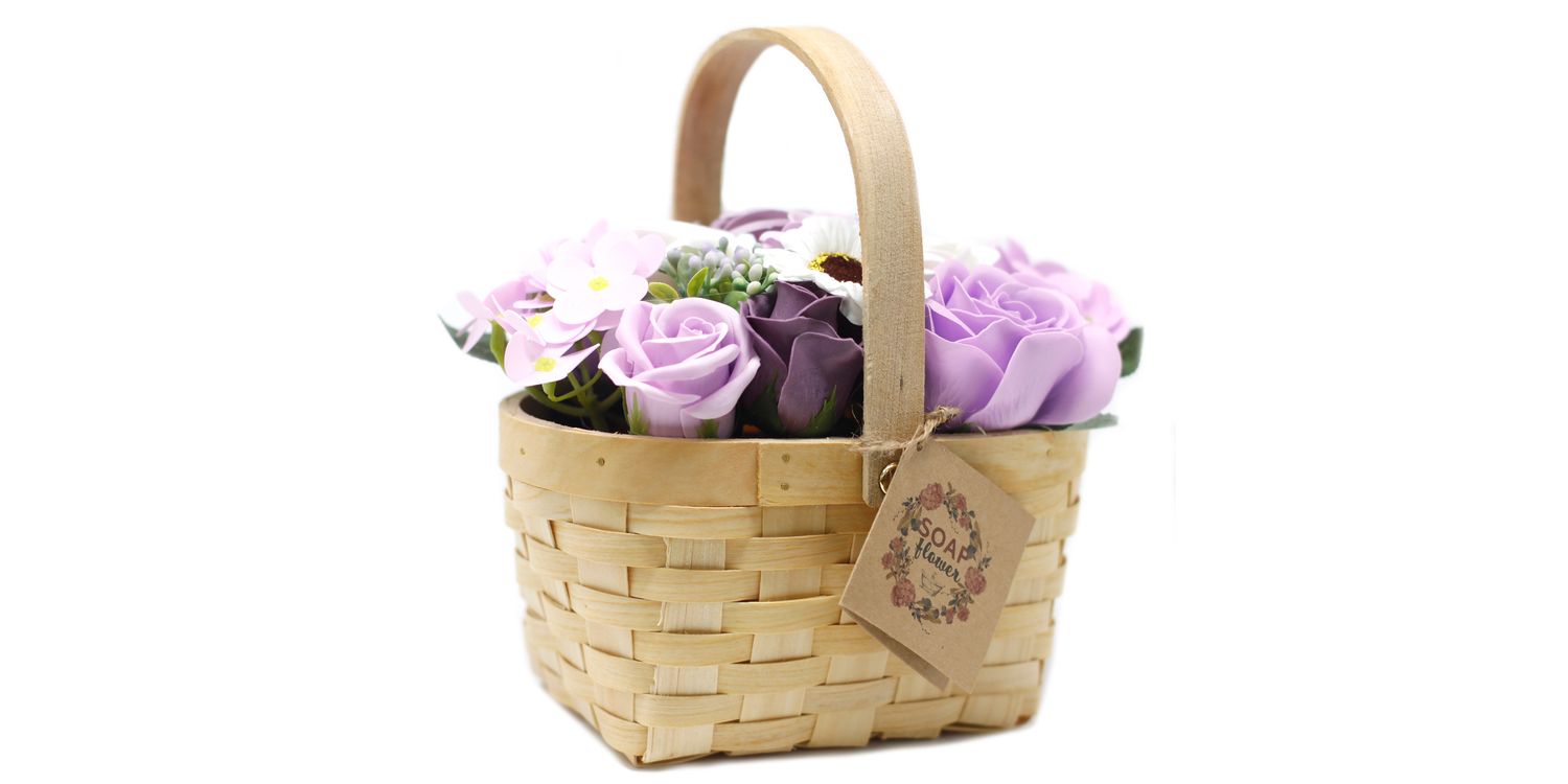 Embrace a moment of calm with the Large Lilac Soap Flower Bouquet, beautifully arranged in a rustic wicker basket. With soft, soothing tones and lifelike petals, this elegant bouquet transforms bath time into a fragrant, spa-like ritual. Simply add a few flowers to warm water and enjoy a relaxing soak that leaves skin smooth, delicately scented, and refreshed.