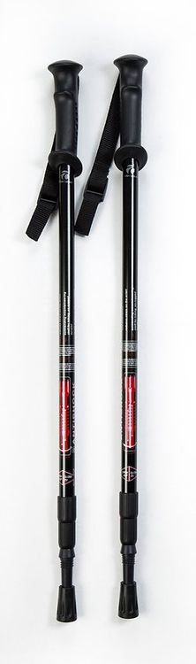 The antishock system makes it perfect for using on rough terrain. Rubberised comfortable grip handle with attached wrist strap. Comes with a removable rubber ferrule, with a spike ferrule underneath, and a removable plate for softer ground.