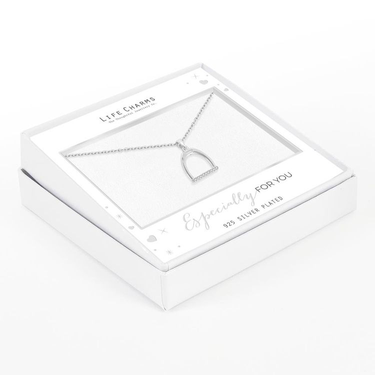 The Especially For You Stirrup Necklace is a beautifully crafted piece designed for those who appreciate subtle equestrian charm. Made from polished silver, the stirrup-shaped pendant showcases fine detailing and a sleek finish, while the adjustable chain offers a comfortable fit for a variety of styles and occasions. It is a thoughtful gift for horse lovers or anyone who enjoys elegant, understated jewellery.