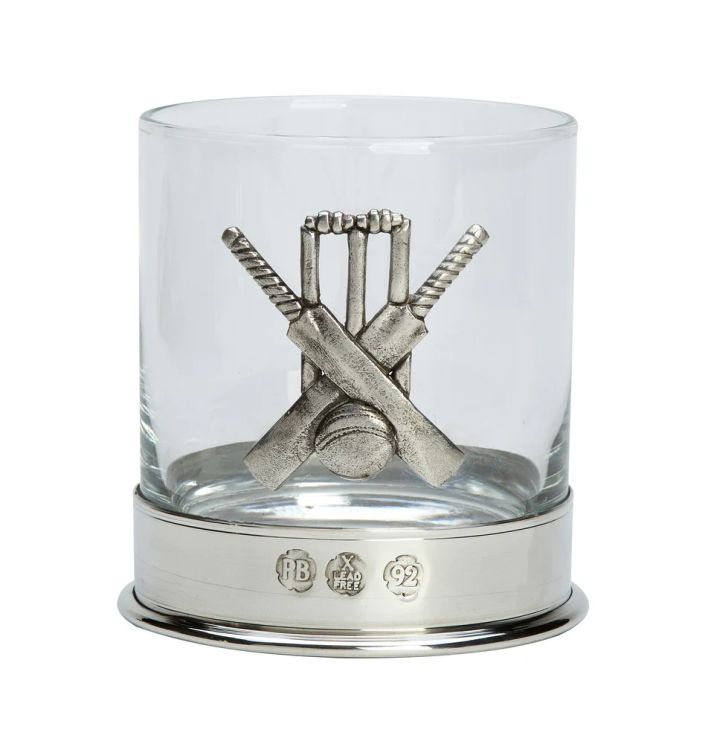 The Pair of Cricket Pewter Whisky Glasses adds a classic countryside feel to any drinks collection. Each glass features a finely detailed cricket emblem and a smooth pewter rim, creating a traditional look that complements the sturdy, comfortable shape. Designed for enjoying your favourite whisky or evening tipple, they bring charm and character to every occasion.