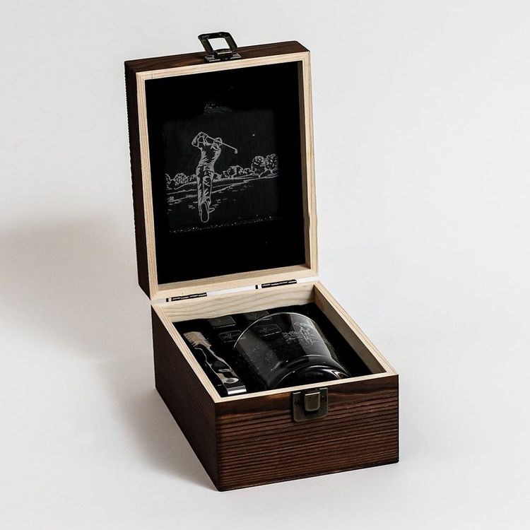 The Just Slate Company Golf Drinks Set will make a wonderful gift for someone special, including a beautifully crafted glass, four engraved whisky stones in a velvet pouch, a pair of ice tongs and a matching coaster that has been engraved with a lovely golf design.